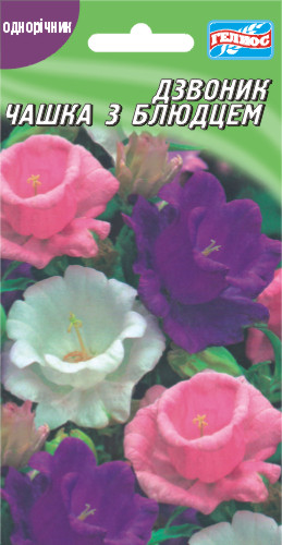 Дворічник. Холодостійка рослина висотою 75-90 см, діаметр куща 30 см. Чашка з блюдцем - один з найбільш цікавих різновидів садових дзвоників. Квіти оригінальної форми мають яскраве забарвлення різних кольорів від яскраво-білого до темно-фіолетового. Ідеальна рослина для квіткових бордюрів, добре поєднується з дельфініумом, мальвою, люпином, жоржинами, карликовими соняшниками та ін. Не витримує перезволоження.